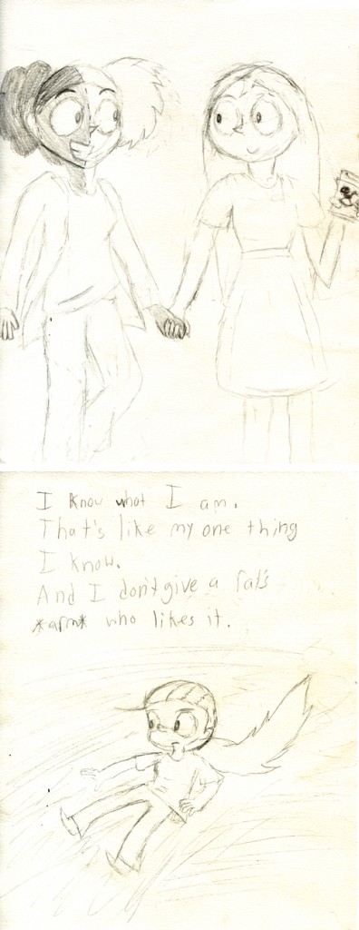 Shaenon: More sketches for Kickstarter backers. Sometimes this project is just an excuse to practice drawing clothes. Speaking of which, thanks to everyone who requested Princess Nick. Channing: Whoever requested a Unity/Silverfish opera duet gets all my love and ten[…]↓ Read the rest of this entry…